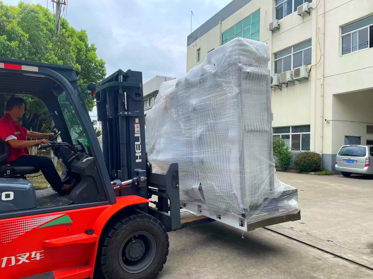 叉車師傅把設(shè)備運(yùn)送到合適的位置