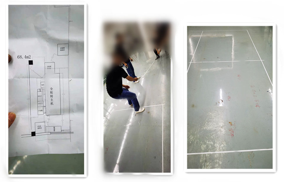 設(shè)備到廠前客戶把擺放位置圖紙和標(biāo)定定位點(diǎn),打印和標(biāo)識(shí)出來了,規(guī)劃好合理的擺放位置