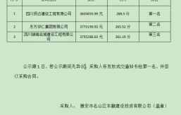 成雅工業(yè)園區(qū)百丈安置房二期項目鋼筋采購,根據(jù)有關(guān)法律、法規(guī)、規(guī)章的規(guī)定,于2023年4月21日經(jīng)雅安市名山區(qū)益業(yè)商貿(mào)有限公司競爭性談判比選流程,評審工作已經(jīng)結(jié)束,成交人已經(jīng)確定,現(xiàn)將成交結(jié)果公示如下:成交單位名稱:四川霞成商貿(mào)有限公司成交價:加成價30元/噸進場時間:待甲方通知成交質(zhì)量要求:合格自成交結(jié)果公示之日起一個工作日內(nèi),對成交結(jié)果無異議的,采購人將簽發(fā)成交通知書,并在五個工作日內(nèi)簽訂合同。雅安市名山區(qū)益業(yè)商貿(mào)有限公司2023年4月23日...