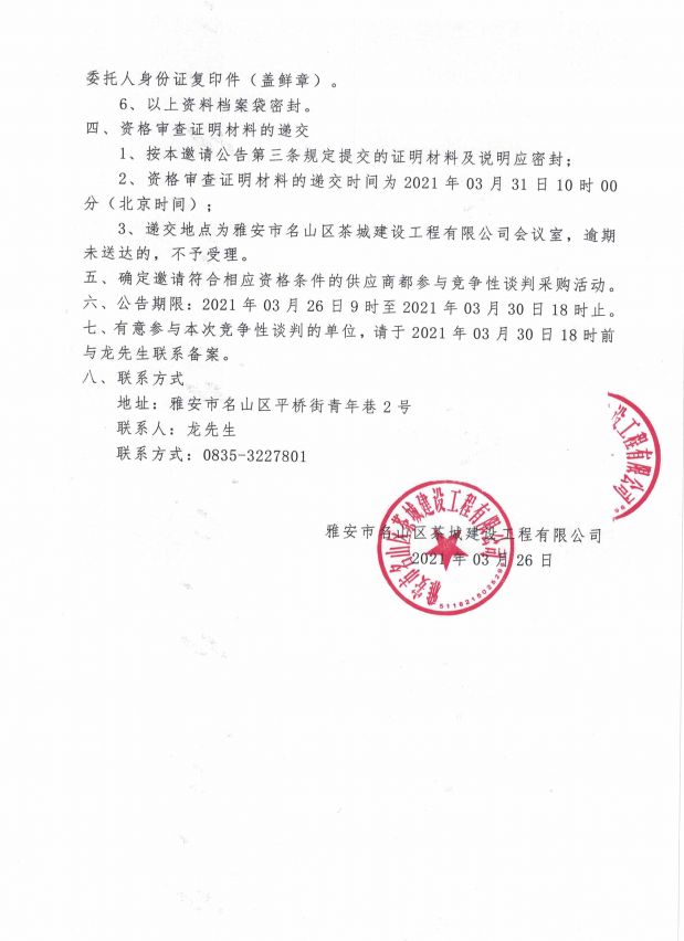 雅安市名山區茶城建設工程有限公司及子公司全面審查詢價公告...