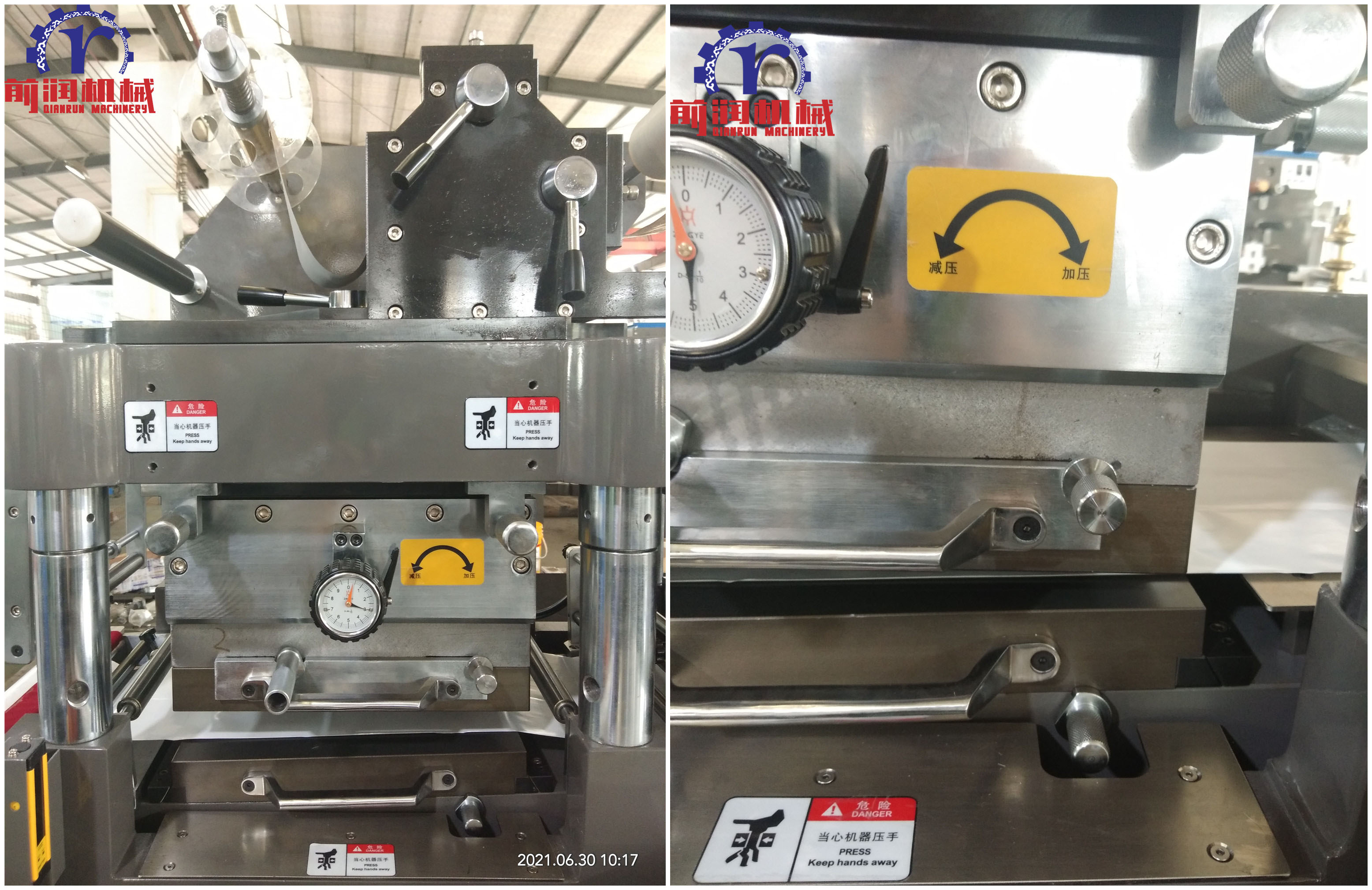 調(diào)校模切機臺的壓力,原則上應該從零開始。實際操作中,全自動模切機有數(shù)據(jù)可參考,操作起來比較方便;半自動模切機的操作人員都習慣于憑經(jīng)驗操作,忽視機器連桿肩上偏心套的調(diào)整。由于偏心套調(diào)整機器壓力的幅度大,生產(chǎn)刀模線少的產(chǎn)品時,必須采用調(diào)整連桿肩兩個偏心套的方法來調(diào)輕機器壓力。