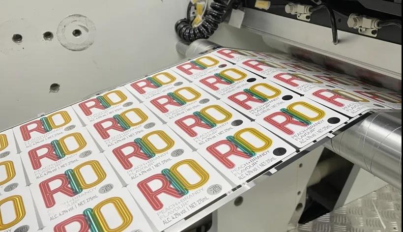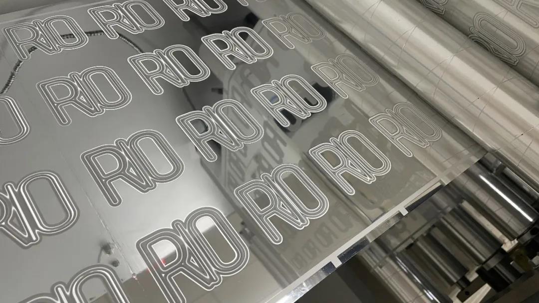 預(yù)先制作好的鐳射效果,再進(jìn)行定位套印。標(biāo)簽表面的逆向光油處理,與浮雕效果的字母形成了啞與亮的對(duì)比,也讓產(chǎn)品在貨架上有更好的吸睛作用。
