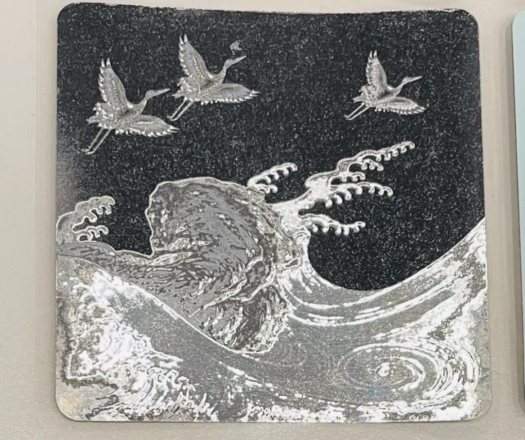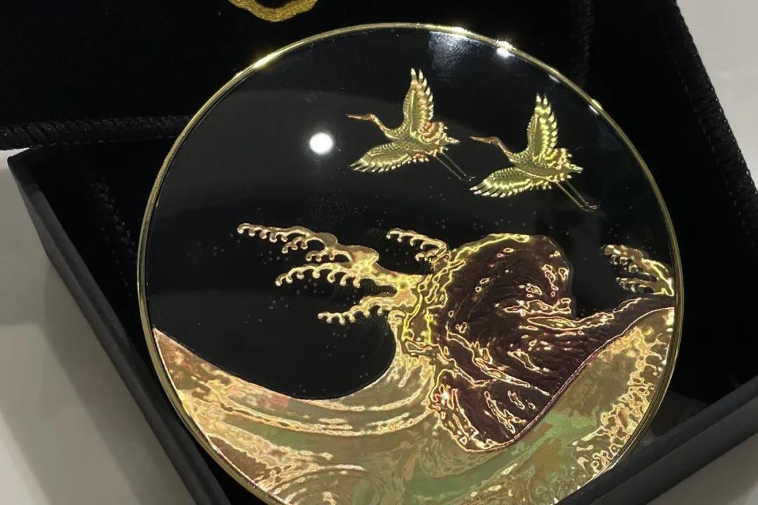故宮合作的這款標(biāo)簽,使用了定制圖案棱鏡效果的不干膠貓眼原材料,再進(jìn)行定位4色印刷,還原了設(shè)計(jì)圖案中仙鶴和海浪的層層細(xì)節(jié)。