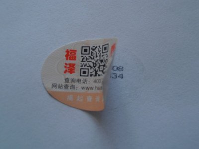 數(shù)碼揭起防偽標(biāo)簽是在紙面標(biāo)簽次層的基礎(chǔ)上,噴印20位防偽數(shù)碼信息,再以特種油墨覆蓋印制紙而而成。標(biāo)識分面層、次層、隔離層、底層三部分,面層是印刷層,能夠印刷文字、圖案;次層是透明或有色的隔離層印有防偽身份碼;底層為用于防粘的離型紙。如果印制特種字體的防偽數(shù)碼信息后還可更好地提高標(biāo)簽的防偽性能,適合于各類產(chǎn)品平面貼、有獎(jiǎng)銷售等,數(shù)碼揭起式防偽標(biāo)簽典型特點(diǎn)就是防止標(biāo)簽信息被轉(zhuǎn)移及二次利用。