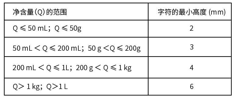 凈含量字符的最小高度
